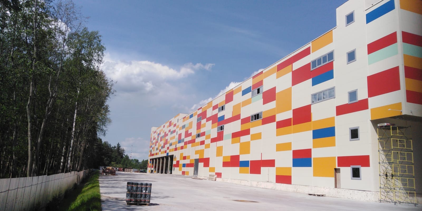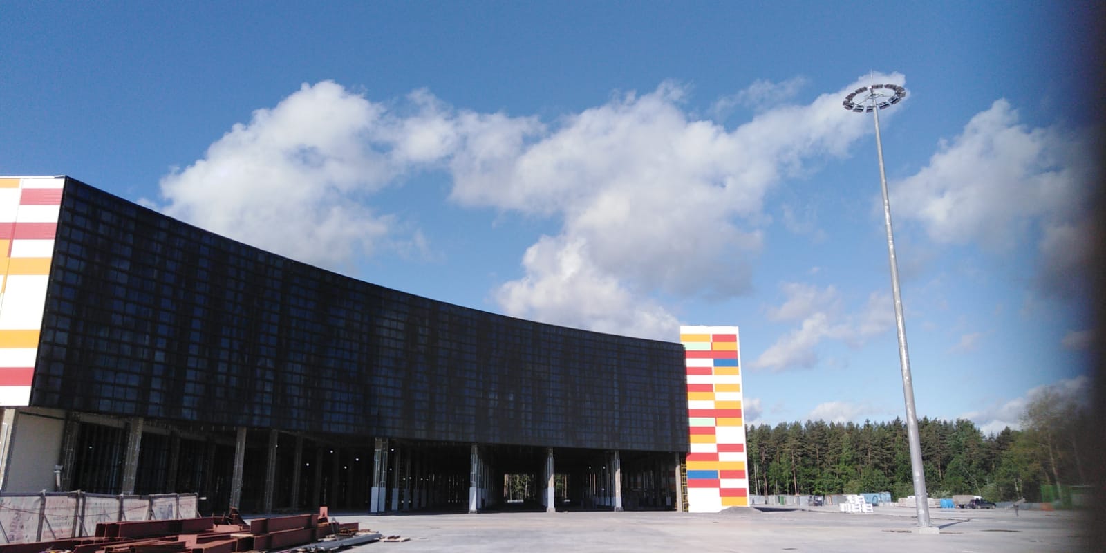 На фасаде ТРЦ размещен один из самых больших экранов в России. Его собрали в конце марта и уже успели протестировать.